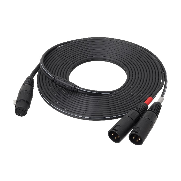 Kablo: 5 m, 8 iletkenli, ekranlı stereo kablo (5-pin XLRF → çift 3-pin XLRM)
