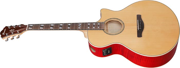 Ibanez AE170, modern sahne gitaristlerinin ihtiyaçları düşünülerek tasarlanmış AE gövde formu, masif Sitka ladin üst kapağı ve gelişmiş elektronik donanımıyla hem konforlu çalım hem de güçlü projeksiyon sunar. Alevli akçaağaç arka ve yan kapaklarıyla parlak ve net bir ton karakteri üretirken, Thermo Aged™ işlemli klavye ve köprü sayesinde stabilite ve rezonans açısından üst seviye bir performans sağlar.