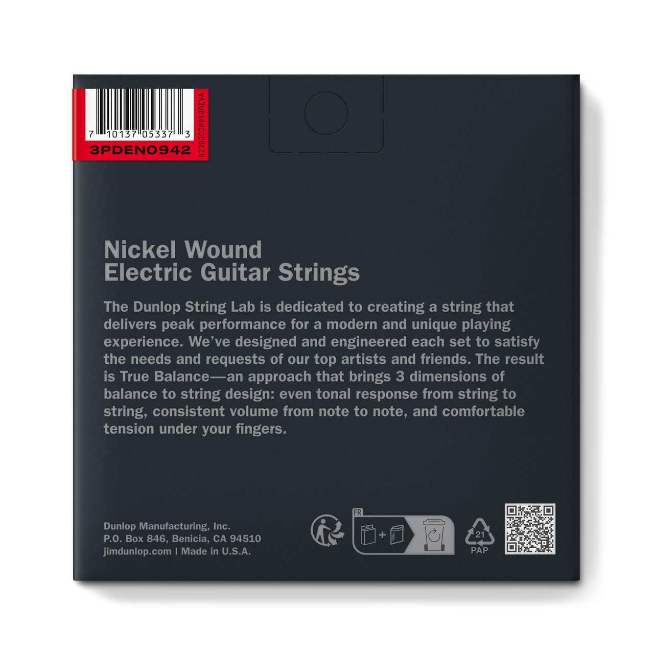 Jim Dunlop 3PDEN0942 Nickel-Plated Steel Light Takım Tel Elektro Gitar Teli 009-42 (3 Set)
