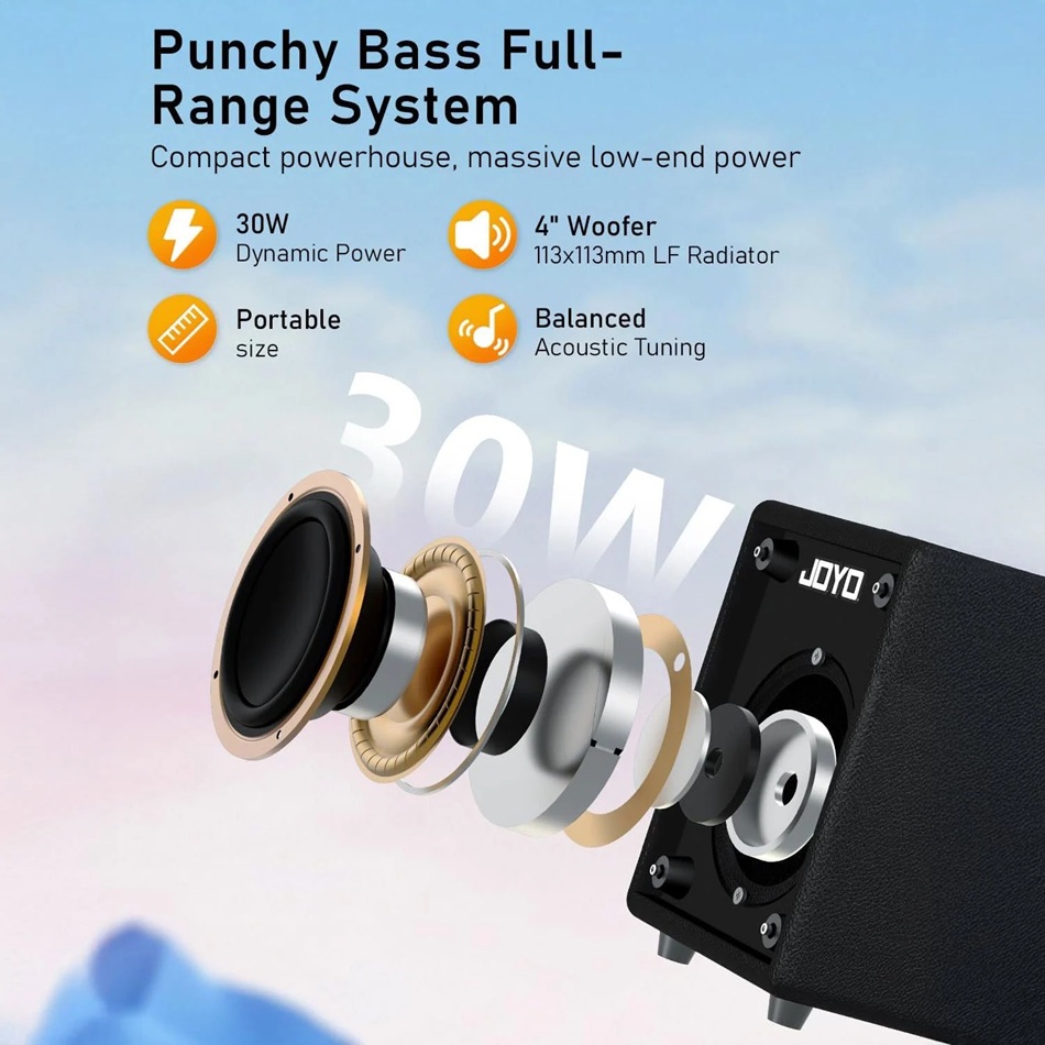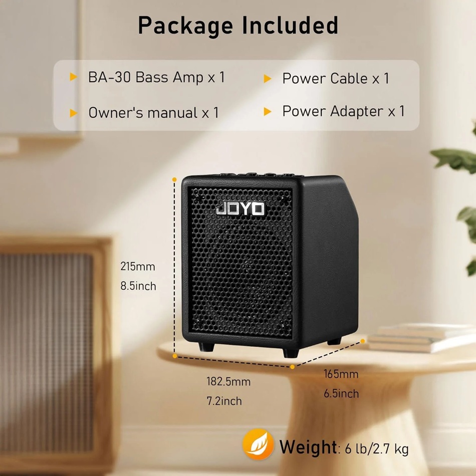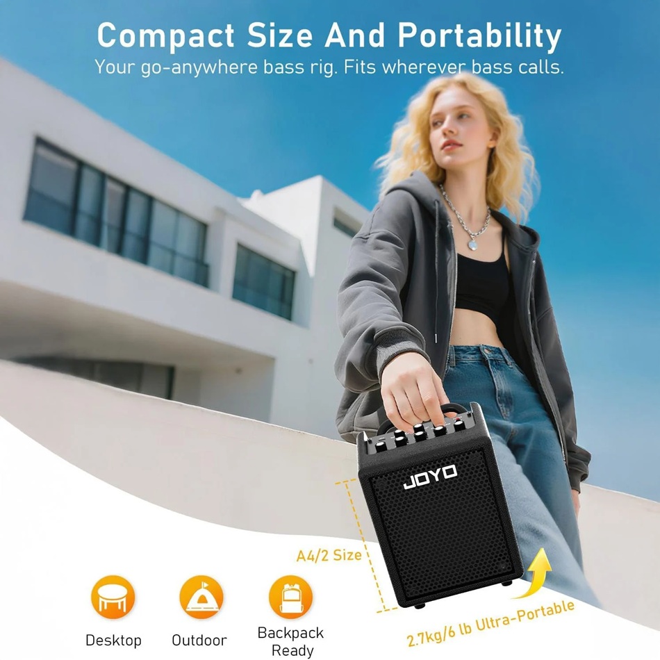 Joyo BA30 Micro Amp, kompakt boyutuna rağmen sunduğu güçlü ton şekillendirme seçenekleri ve modern bağlantılarıyla evde pratik, küçük provalar ve kayıt odaklı kullanım için tasarlanmış çok yönlü bir bas gitar amfisidir.