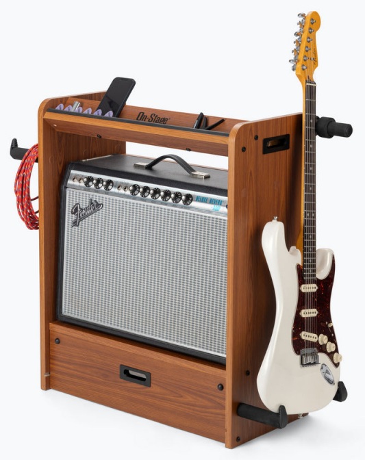 On Stage WS5000B, gitaristlerin sahne, stüdyo veya prova alanlarında ihtiyaç duyduğu tüm ekipmanları tek bir kompakt sistemde bir araya getiren profesyonel bir gitar çalışma istasyonudur. Dayanıklı MDF gövdesi ve şık Rosewood (gül ağacı) kaplamasıyla hem sağlamlık hem estetik sunar.