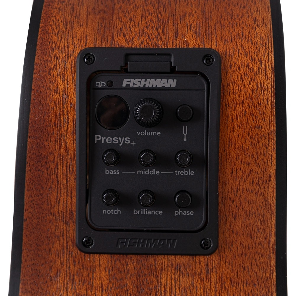 TYMA TG-10M CE, Fishman Presys preamp sistemi ile donatılmıştır. Bu gelişmiş preamp sistemi, gitarınızın doğal akustik sesini sahneye taşımanıza yardımcı olur. Fishman Presys, ton kontrolü, entegre bir akort cihazı ve ses çıkışındaki mükemmel netlik ile her performansın kusursuz olmasını sağlar. Bu sistem, gitarın tonunu bozmadan her detayın doğru şekilde yansıtılmasını sağlar, böylece her çalımda kaliteli ses alırsınız.