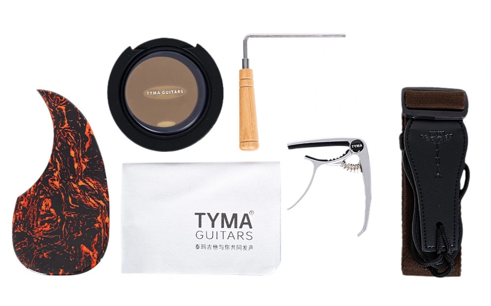 Gitar, D'Addario XS telleri, uzun süreli performans için dayanıklı nikel açık dişli burgular, gri taşıma çantası ve aksesuar çantası (askı, pena, kapo, pickguard, bez, alyan ve sertifika) ile birlikte sunulmaktadır. TYMA TG-12 CE, her seviyeden gitarist için üstün bir çalma deneyimi sunan profesyonel bir elektro-akustik modeldir.