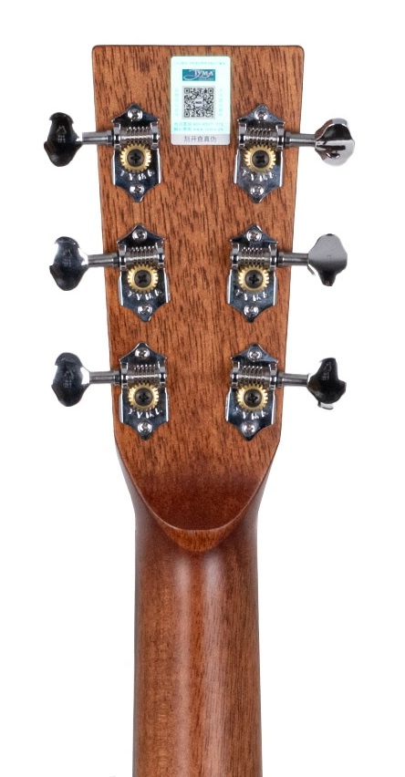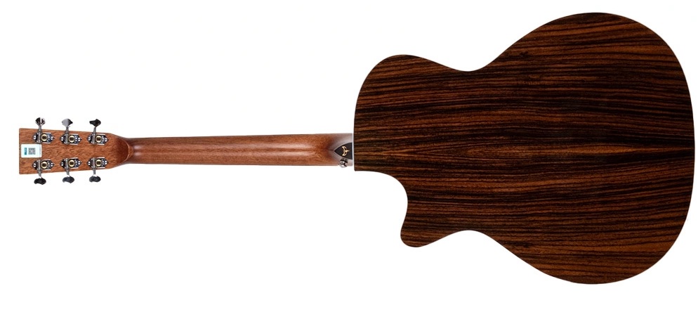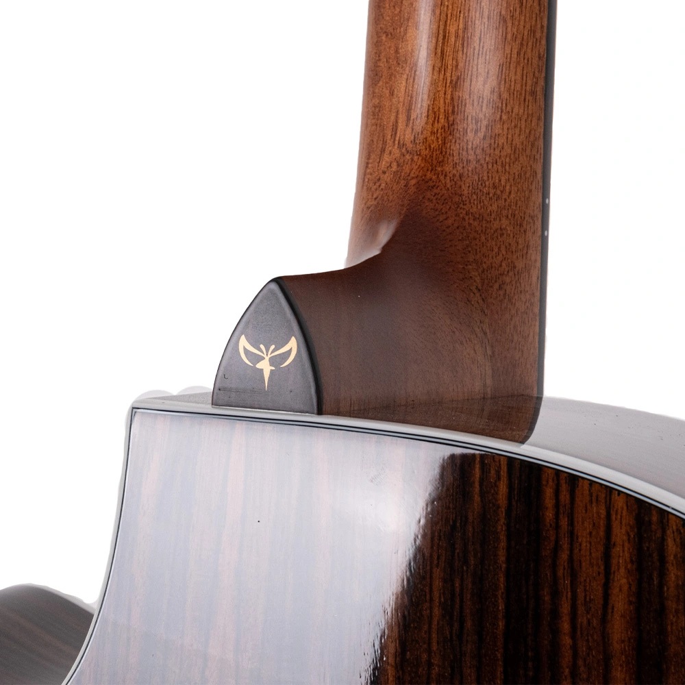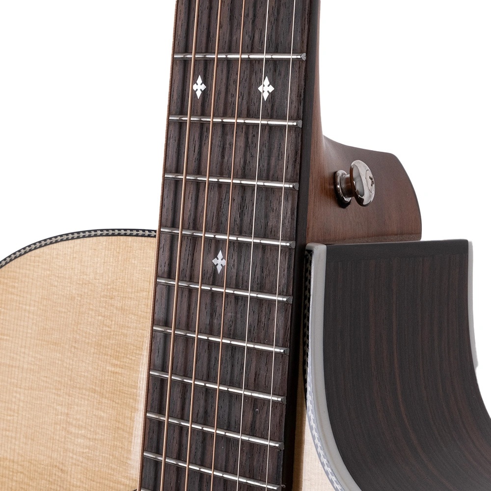 Maun sap ve siyah Purple Heart tuşe, uzun süreli çalım konforu sunarken sağlam bir yapı sağlar. 14. perdede bağlantılı sap, üst perdelere rahat erişim imkânı sunar. 43 mm genişliğindeki imitasyon fildişi üst eşik ve saddle, doğal ses aktarımını artırarak dengeli bir ton elde edilmesini sağlar.