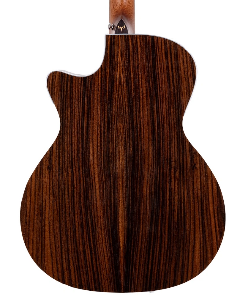 TYMA TG-12 CE, Grand Auditorium gövde yapısıyla dengeli ve güçlü bir ton sunan, hem sahne hem de stüdyo kullanımı için ideal bir elektro-akustik gitardır. Masif Engelmann ladin üst kapak, gitarın sesine parlaklık ve netlik katarken, Hint gül ağacı arka ve yanlar sıcak ve zengin bir ton karakteri sunar. TYMA Double V-Shape köprü desteği, daha iyi ses projeksiyonu ve uzun sustain sağlar.