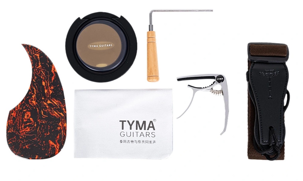 TYMA TG-15 CE, gitarı dış etkenlerden koruyan ABS Hardcase ile birlikte gelir. D’Addario XS teller, dayanıklılığı ve ton kalitesiyle uzun ömürlü bir kullanım sunarken, aksesuar seti içerisinde askı, pena, kapo, pickguard, temizleme bezi, alyan ve sertifika yer alır. TG-15 CE, yüksek kaliteli malzemeleri ve profesyonel tasarımıyla, her seviyeden gitarist için mükemmel bir seçimdir.