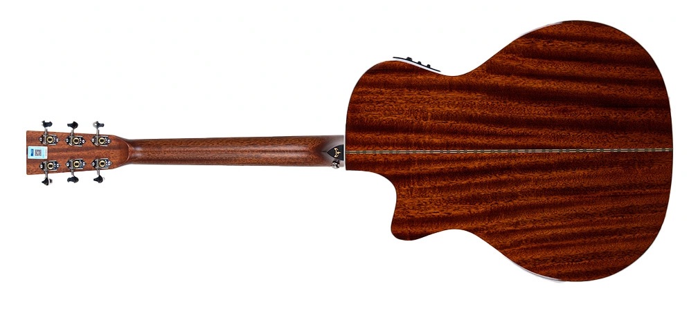 Maun sap, uzun süreli çalımda rahatlık sağlarken, abanoz tuşe, pürüzsüz yüzeyi ve 12" (305 mm) yarıçapı ile üstün bir his sunar. 43 mm genişliğindeki kemik üst eşik ve kemik saddle, sesin doğal ve dengeli bir şekilde iletilmesine katkıda bulunur. Nikel kaplama açık dişli burgular, hassas akort imkânı sunarak stabil bir performans sağlar.