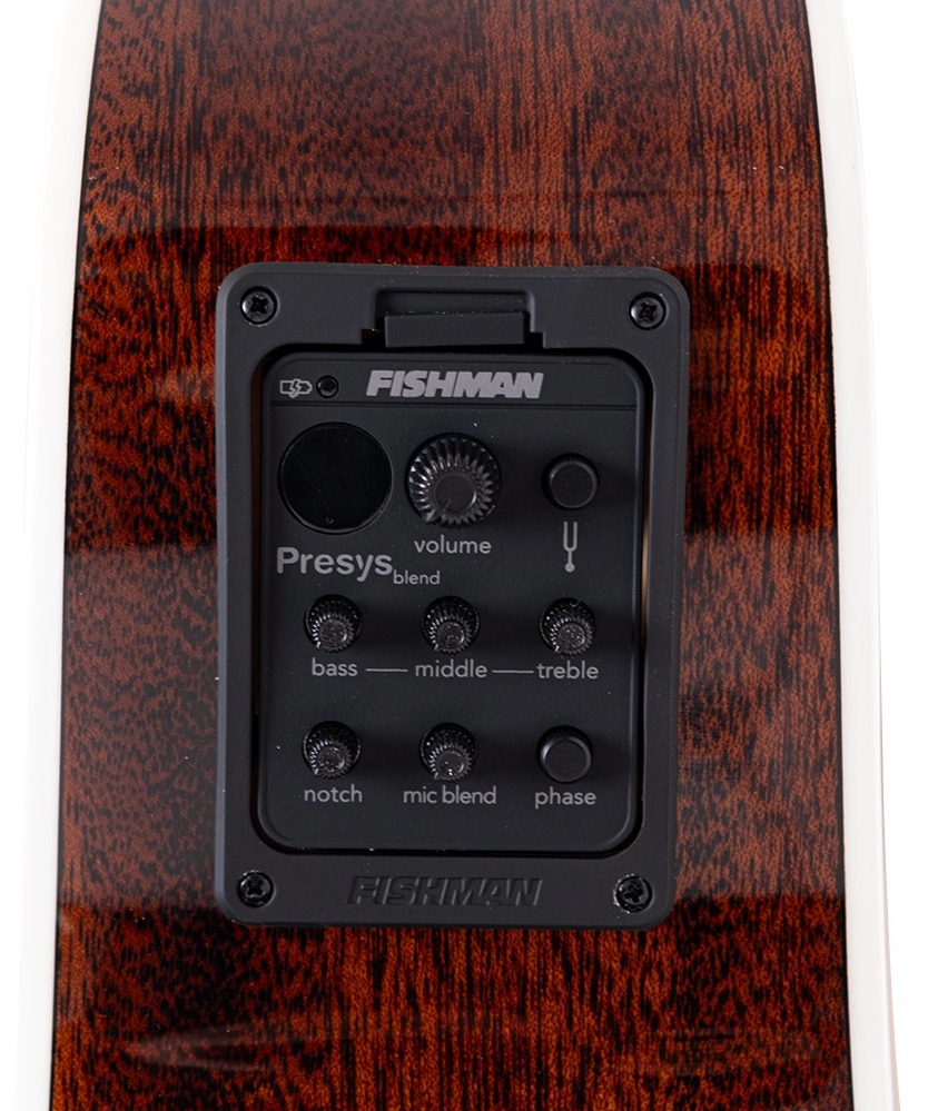 Fishman Presys preamp sistemi, gitarın doğal akustik tonunu en iyi şekilde yansıtmak için tasarlanmıştır. Gömülü ekolayzır (EQ) kontrolleri, sesi istenilen tona göre şekillendirmeye olanak tanırken, dahili tuner, sahnede ve stüdyoda hızlı ve hassas akort yapmayı kolaylaştırır. Bu sistem, elektro-akustik performansı üst seviyeye taşıyarak güçlü ve dengeli bir çıkış sunar.