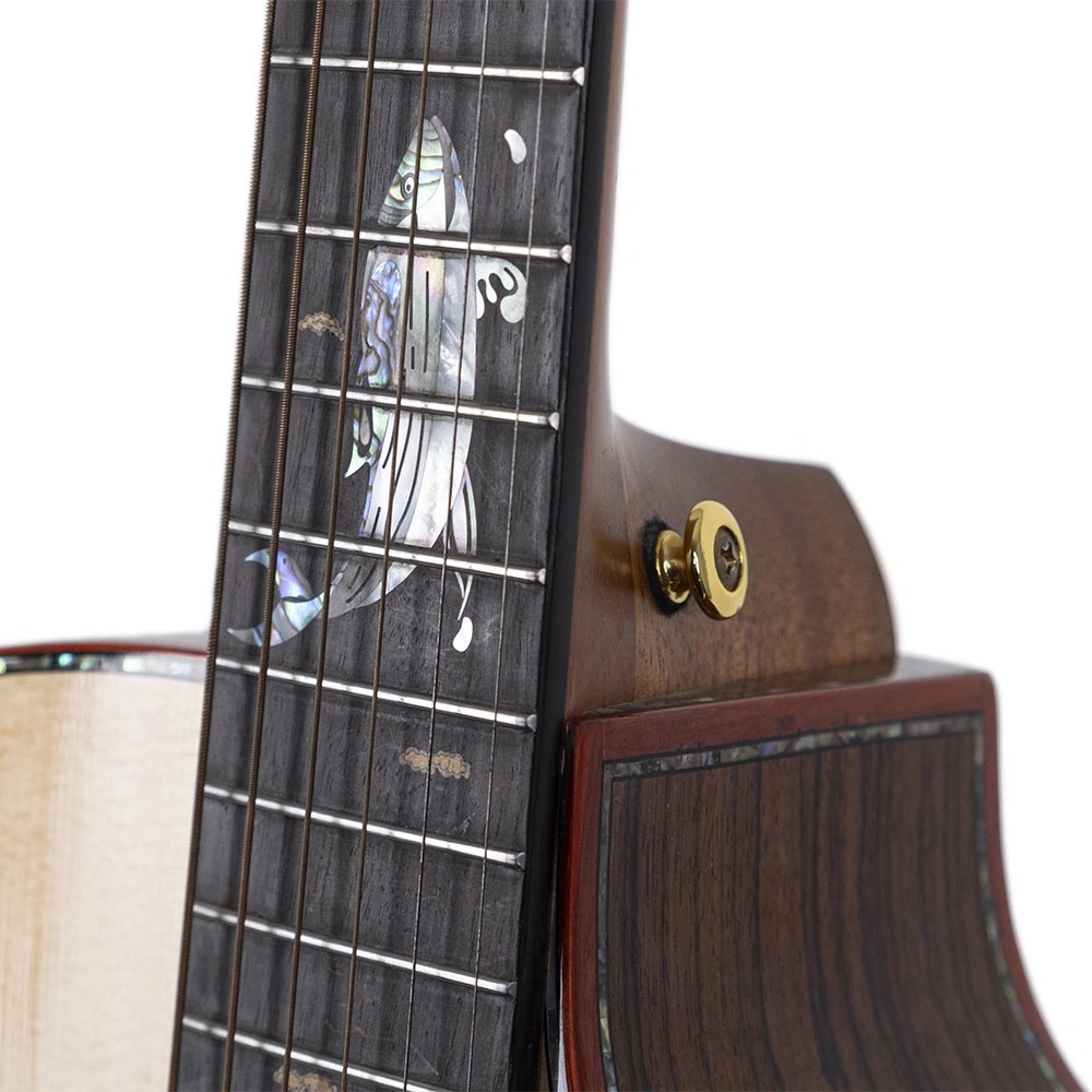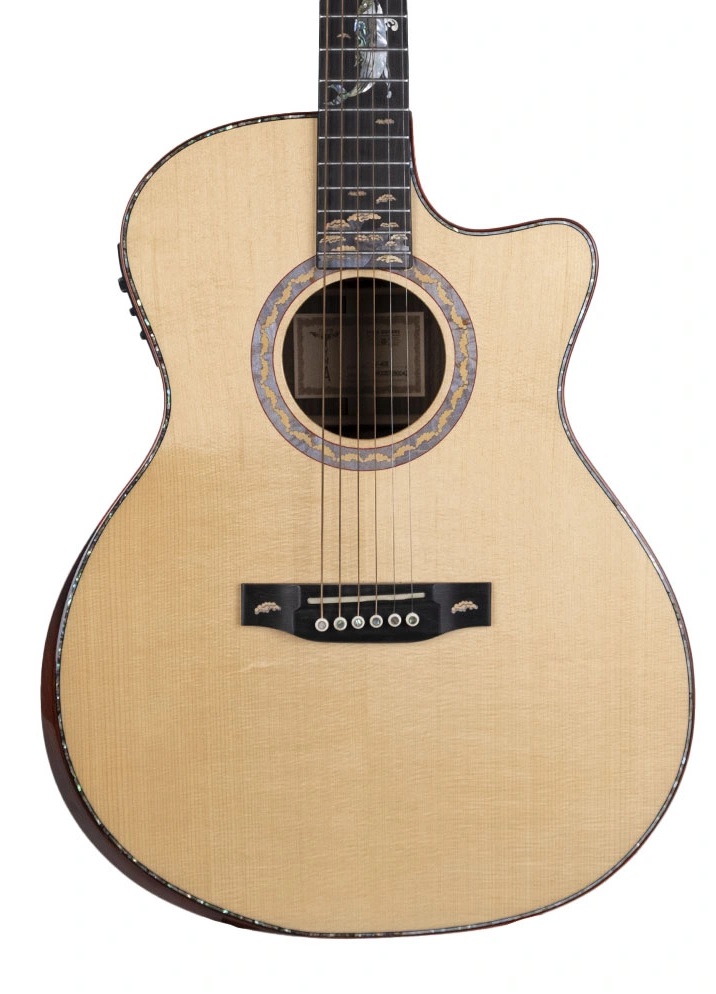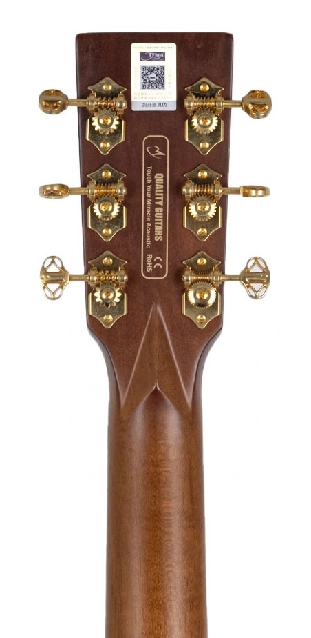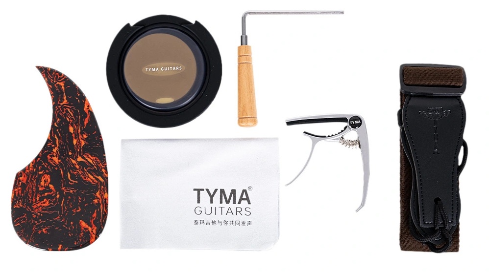 Gitarın içinde geleneksel X-bracing bulunmaktadır. Somun ve perde ise kemikten yapılmıştır. Somun genişliği 43 mm'dir. Kenar ve rozet Afrika padouk ve abalone, bağlantı ise akçaağaç ile yapılmıştır. Altın renkli akort burgularına sahip gitar parlak bir cilaya sahiptir. Gitarın 20 perdesi vardır ve ölçeği 650 mm'dir. Gitar D'Addario EXP16 tellerle donatılmıştır. Elektronikler TYMA T-200 modelidir. Gitarın yanında gitar çantası, askı, çalgı bezi, garanti kartı ve kullanım kılavuzu bulunmaktadır.