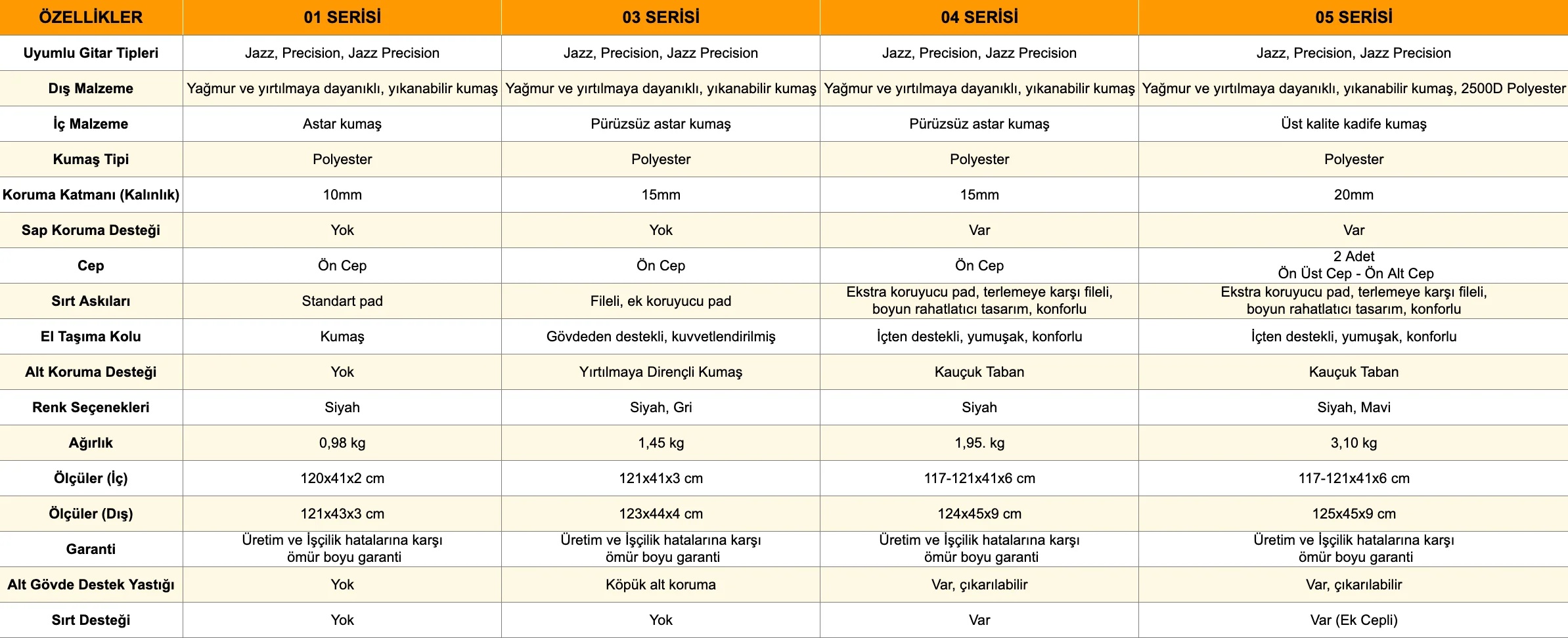 Ürünün malzeme kalitesi gayet iyi, içi destekli ve kalın katmanlı bir kılıf. Gitar kasasının alt kısmı destekli, yere dik koyarsanız gitara zarar gelmez. Sap kısmının altına denk gelen destekli kısım da çok faydalı, iç kadife kumaşı da çok kaliteli. Çokca cebi var, öndeki büyük fermuarlı gözüne dizüstü bir bilgisayar dahi sığabiliyor. Precision bass ile kullanıyorum boyut olarak uygun. Düşünmeden alabilirsiniz, beklentimin çok üzerinde bir taşıma çantası.