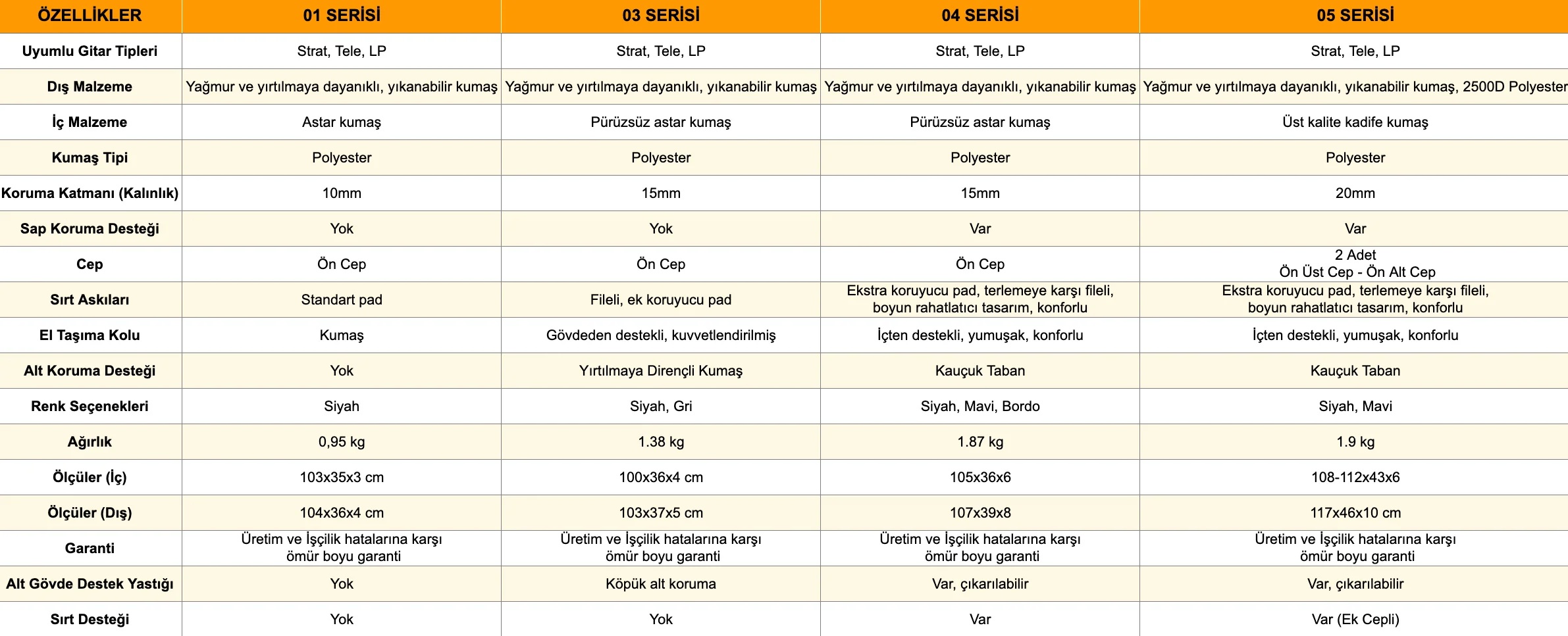 Gitarınızı güvenle taşımanın en şık ve dayanıklı yolunu Wagon elektro gitar çantalarıyla keşfedin. Her seviyeden gitarist için özel olarak tasarlanan Wagon elektro gitar çantası modelleri; hafif, darbeye dayanıklı yapıları ve sağlam dış kumaşlarıyla hem şehir içi kullanımına hem de uzun turnelere uygundur.