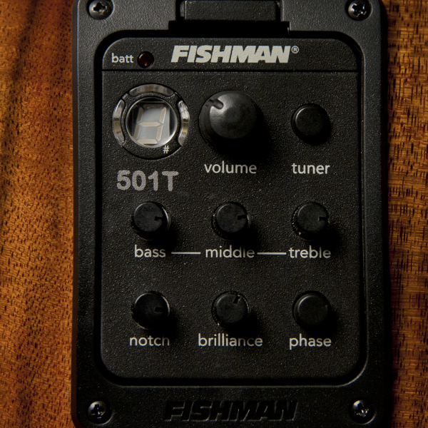 Çok yönlü güçlendirilmiş ton şekillendirme için Fishman Presys+, aktif preamp sistemi ile donatılmıştır. Presys+ ayrıca entegre bir akort cihazına sahiptir.