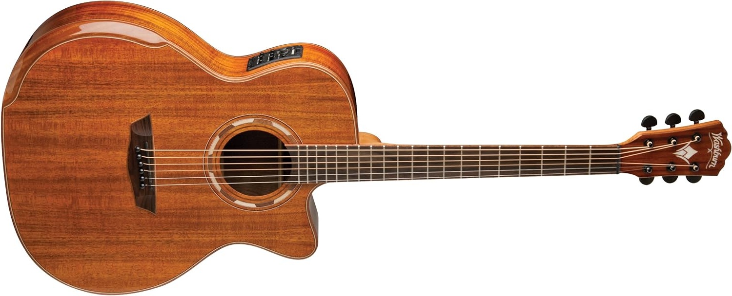 Akçaağaç/maun/akçaağaç şerit, kitap uyumlu Koa sırtı da böler. Sapta sedef Washburn logosu ve 18:1 oranlı akort burguları yer alır. Washburn Parquet tarzı rozet alternatif akçaağaç ve maundan yapılmıştır.